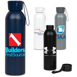 Additional Information22 oz. single-wall recycled aluminum water bottle with plastic screw-on lid.